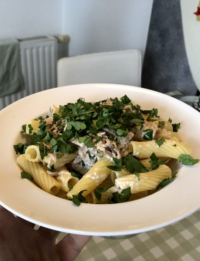 Ingredients for 4 people: 500g of Pasta 2 cans of tuna (in its own juice) 2 pots of heavy cream juice of one lemon as…
